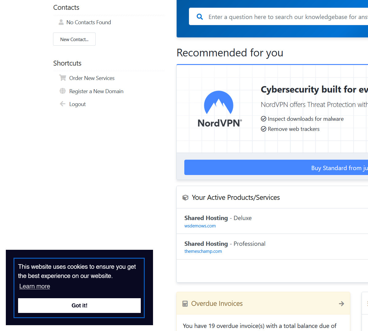 This feature enhances the speed and responsiveness of your client area by dynamically loading data tables using AJAX. This means data for items like domains, tickets, invoices, or any other services is only loaded as needed.