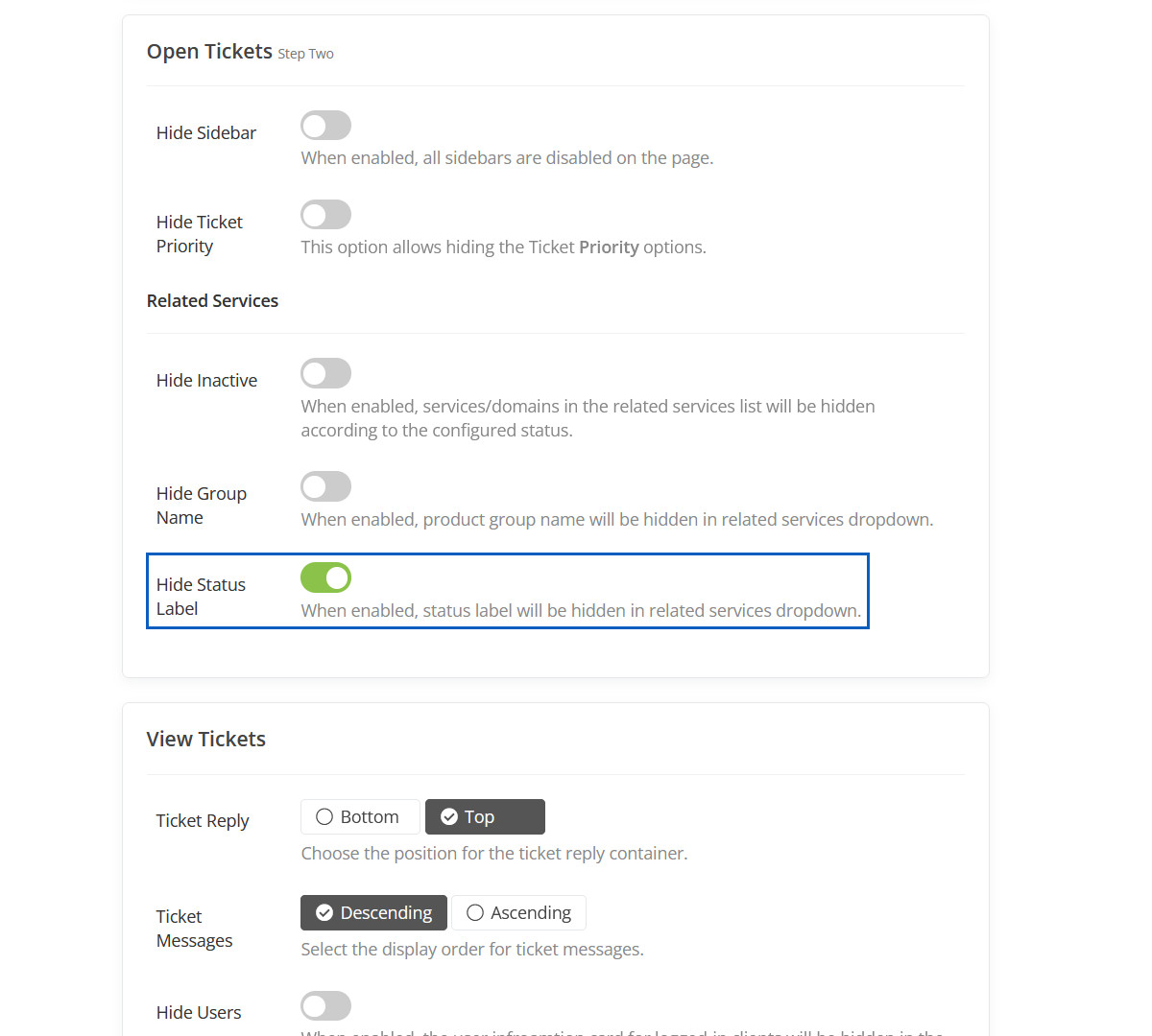 When enabled, It will hide "Expiring..." label from "Your Active Products/Services" panel