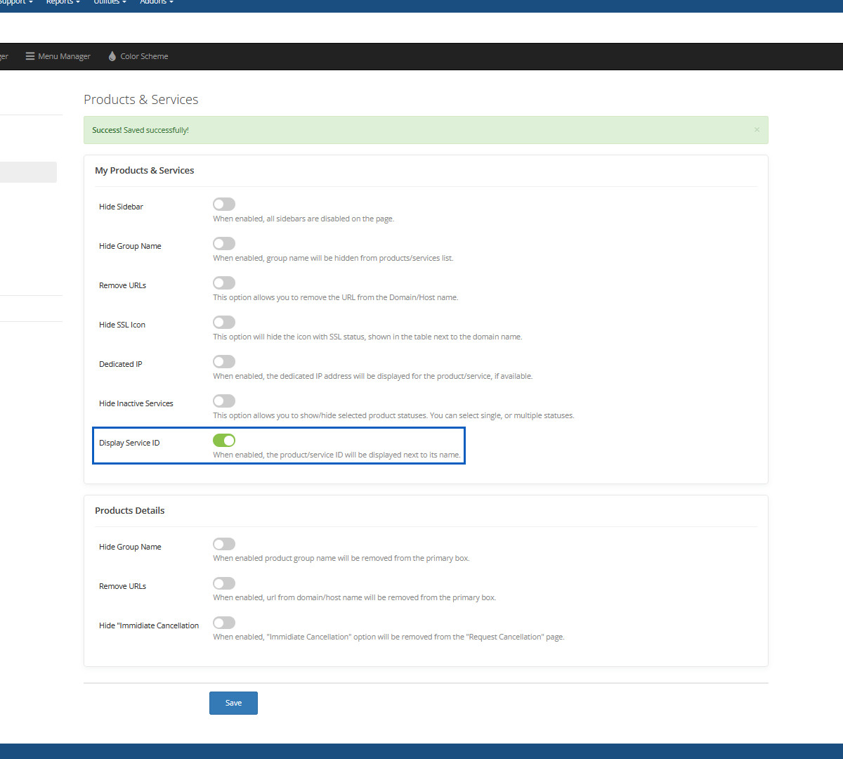 The Croster WHMCS Theme offers a predefined list of menus for each menu type. These menus can be managed under the "Menu Manager" in the "Croster Panel" addon.